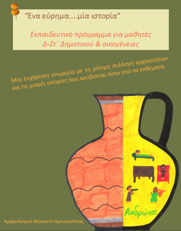 Μέσα από το εκπαιδευτικό πρόγραμμα "Ένα εύρημα...μία ιστορία" οι συμμετέχοντες θα έχουν την ευκαιρία να γνωρίσουν τις μικρές ιστορίες που μας αφηγούνται επιλεγμένες ενότητες της μόνιμης έκθεσης του Αρχαιολογικού Μουσείου Ηγουμενίτσας και να ανακαλύψουν με έναν ευχάριστο τρόπο πτυχές της καθημερινής ζωής των αρχαίων Θεσπρωτών: την οργάνωση και τη λειτουργία της Αγοράς, εστιάζοντας στον εμπορικό της ρόλο και στον τρόπο πραγματοποίησης των συναλλαγών, τον ρόλο του Πρυτανείου, ενός δημόσιου κτιρίου στην αρχαία πόλη των Γιτάνων Θεσπρωτίας, τον χώρο ενός αρχαίου μαγειρείου με αναφορές στα σκεύη και τις διατροφικές συνήθειες στην αρχαία Ελλάδα, το λουτρό και την προσωπική υγιεινή κατά την…