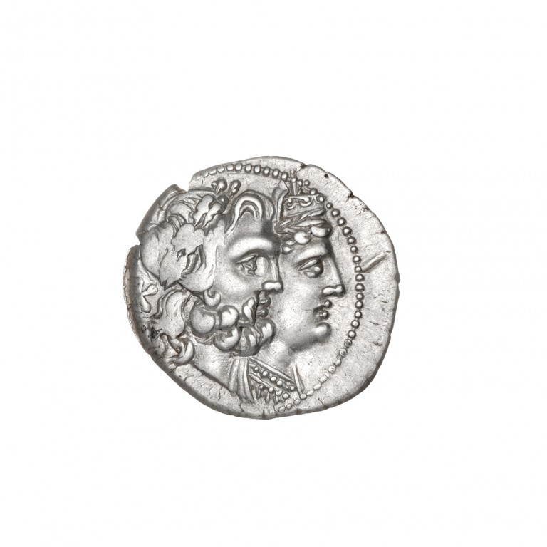 Αργυρό νόμισμα του Κοινού των Ηπειρωτών - Εμπροσθότυπος: Κεφαλές Διός και Διώνης.…
