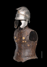 Ασημένιο κράνος και σιδερένιος θώρακας, με χρυσές λεπομέρειες. 4ος αι. π.Χ., Προδρόμι