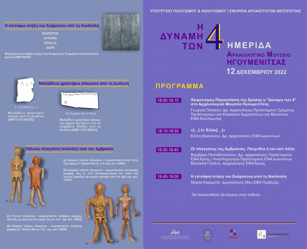 ΕΚΔΗΛΩΣΕΙΣ :: Αρχείο Εκδηλώσεων | Ημερίδα “Η δύναμη των 4”. Αρχαιολογικό Μουσείο Ηγουμενίτσας, Δευτέρα 12 Δεκεμβρίου 2022, ώρα 6.00 μ.μ