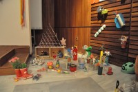 Όλα τα σχολικά τμήματα που συμμετείχαν στο εκπαιδευτικό πρόγραμμα και στο καλλιτεχνικό εργαστήρι συνέβαλαν στην έκθεση με τις δημιουργίες τους (μακέτες, συνθέσεις, μεμονωμένα αντικείμενα και χειροτεχνίες). Στην έκθεση συμμετείχαν, επίσης, σχολικά τμήματα Α/θμιας & Β/θμιας Εκπαίδευσης και Προσχολικής Αγωγής, με κατασκευές που είχαν υλοποιήσει στην τάξη, στο πλαίσιο σχετικών προγραμμάτων περιβαλλοντικής εκπαίδευσης ή καλλιτεχνικών εργαστηρίων.