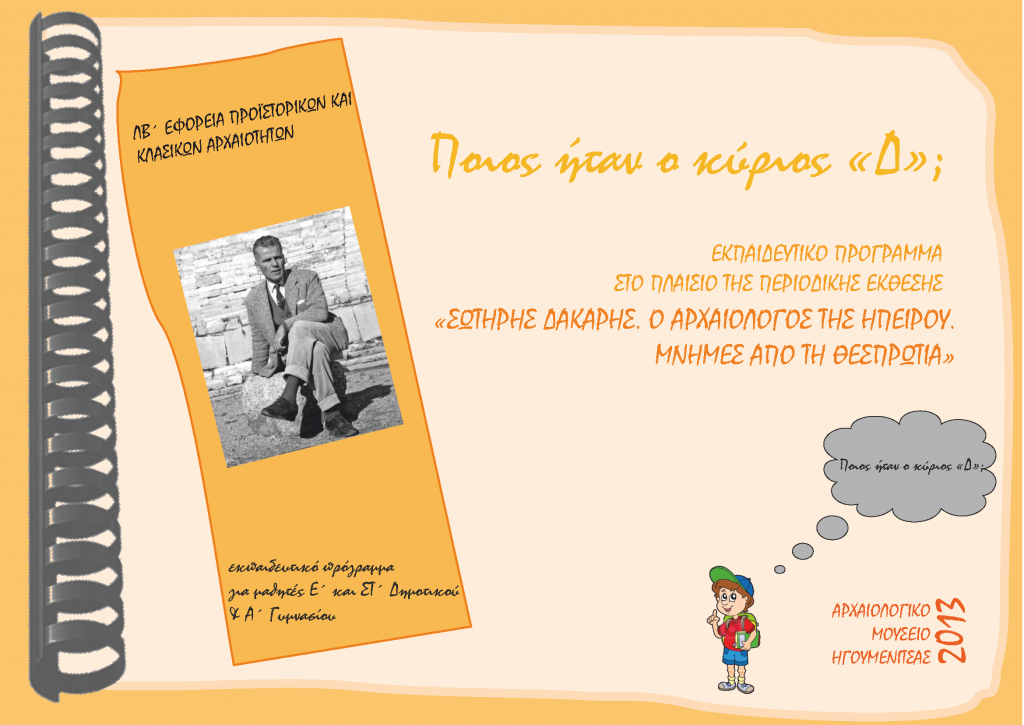 Εκπαιδευτικό πρόγραμμα στο πλαίσιο φιλοξενίας της περιοδικής έκθεσης «Σωτήρης Δάκαρης. Ο Αρχαιολόγος της Ηπείρου. Μνήμες από τη Θεσπρωτία» στο Αρχαιολογικό Μουσείο Ηγουμενίτσας.