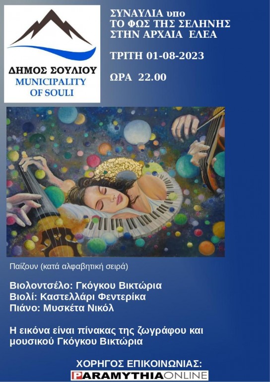 Υπό το φως της σελήνης. Συναυλία στην αρχαία Ελέα. 1 Αυγούστου 2023, ώρα 22.00