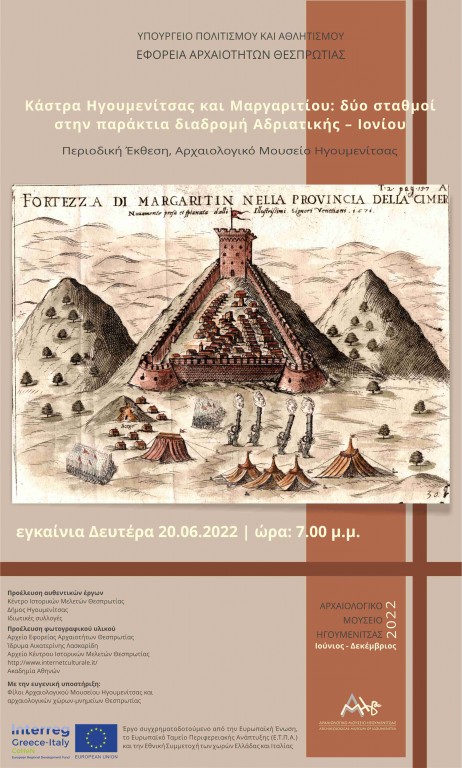 Εγκαίνια της περιοδικής έκθεσης Κάστρα Ηγουμενίτσας και Μαργαριτίου: δύο σταθμοί στην παράκτια διαδρομή Αδριατικής – Ιονίου, Αρχαιολογικό Μουσείο Ηγουμενίτσας, Δευτέρα 20 Ιουνίου 2022, ώρα 19.00
