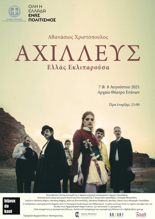 Θεατρική παράσταση «Αχιλλεύς» (Ελλάς Εκλιπαρούσα). Αρχαίο Θέατρο Γιτάνων, 7 & 8 Αυγούστου 2021, ώρα 21.00