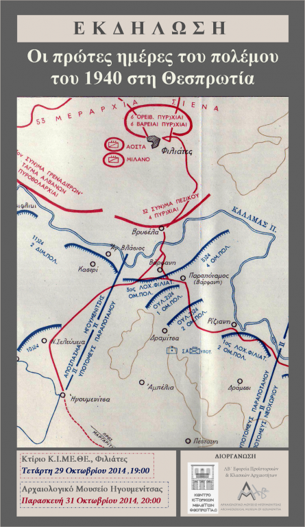 Επετειακή εκδήλωση «Οι πρώτες ημέρες του πολέμου του 1940 στη Θεσπρωτία», Αρχαιολογικό Μουσείο Ηγουμενίτσας, Παρασκευή 31 Οκτωβρίου 2014, 20.00 μ.μ.