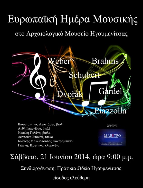 Μουσική Συναυλία, στο πλαίσιο του εορτασμού για την Ευρωπαϊκή Ημέρα Μουσικής. Αρχαιολογικό Μουσείο Ηγουμενίτσας, 21 Ιουνίου 2014