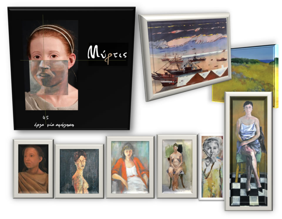Η φωτογραφική έκθεση αποτυπώνει τα διάφορα στάδια της διεπιστημονικής συνεργασίας στο πλαίσιο του ερευνητικού προγράμματος «Μύρτις: πρόσωπο με πρόσωπο με το παρελθόν» και τη διαδικασία που ακολουθήθηκε για την ανάπλαση του προσώπου της Μύρτιδας. Παράλληλα, παρουσιάζονται 45 εικαστικά έργα ζωγραφικής και γλυπτικής, δημιουργίες σύγχρονων Ελλήνων καλλιτεχνών που εμπνεύστηκαν, δημιούργησαν ή δώρισαν έργα τους για τη Μύρτιδα και την υποστήριξη του διεπιστημονικού προγράμματος.